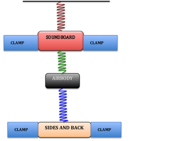 You’ll notice I carefully used the words “back and sides assembly” rather than just the word “back”. For the three element model to work there’s no need for the back and sides to do anything other than vibrate up and down for them to play their part. The soundboard, we know, behaves in a more complicated way and is the most important element in creating a good guitar sound.