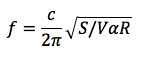 Gore and Gilet present a useful discussion of applying the Helmholtz equation to the guitar (Contemporary Acoustic Guitar – Design2-14). They derive what they disarmingly call a “fiddle factor”,α, an effective length figure based on soundhole radius rather than soundhole thickness that applies to a Dreadnought body specifically, and suggests that the Helmholtz equation for a guitar should be: