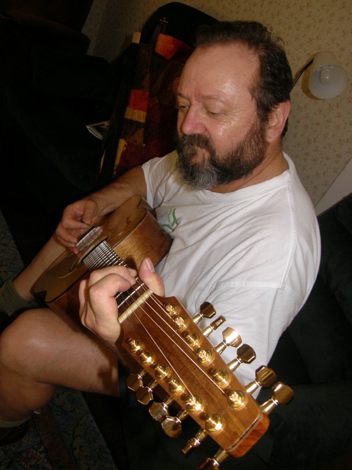 David from Adelaide enjoys his Parlour 12. We spent a lot of time deciding on the neck width and string spacing that was right for him. He likes to Carter pick, so the right space between the courses was important.